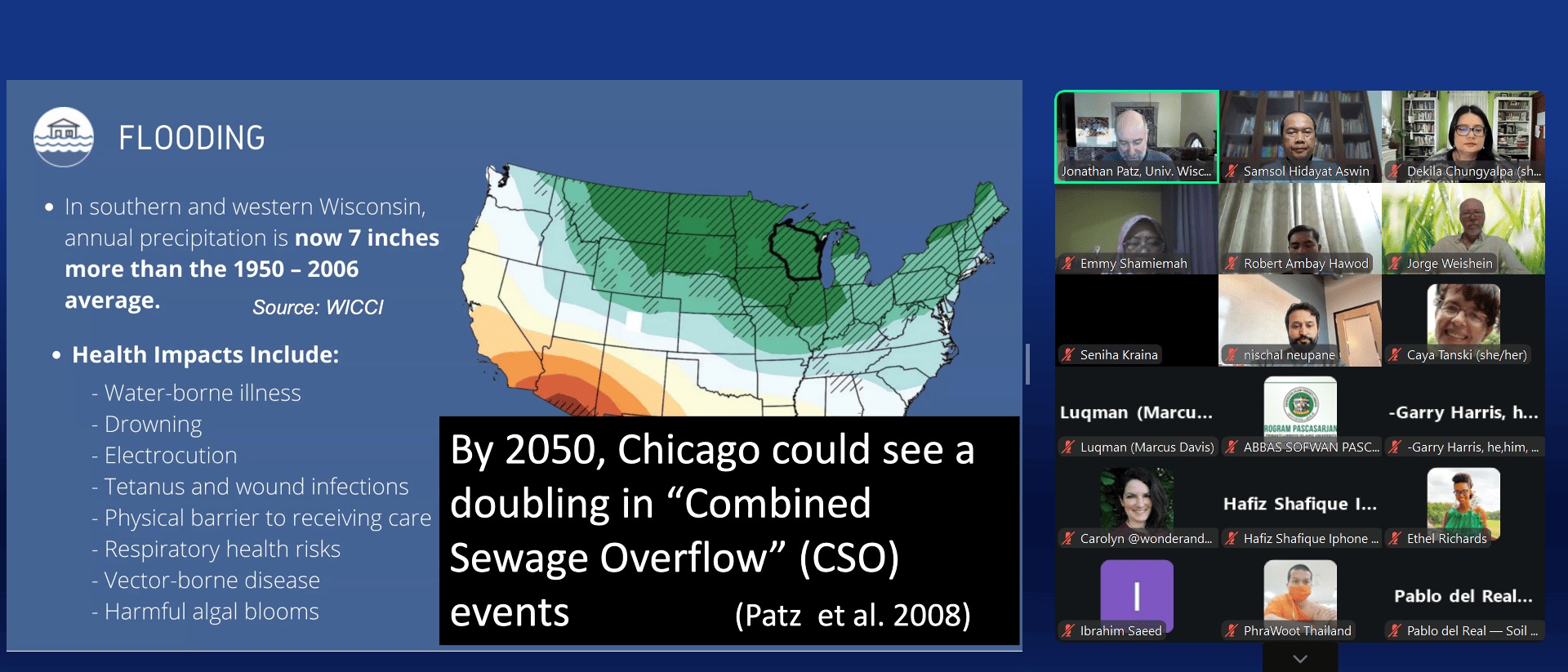 The lecture featured Jonathan Patz, a leading professor at the University of Wisconsin–Madison, founder of the Global Health Institute, and a long-serving Lead Author for the Intergovernmental Panel on Climate Change (IPCC)—a contribution that helped earn the IPCC the 2007 Nobel Peace Prize. With his background as a physician and public health scientist, Patz spoke not only through data, but with moral urgency.