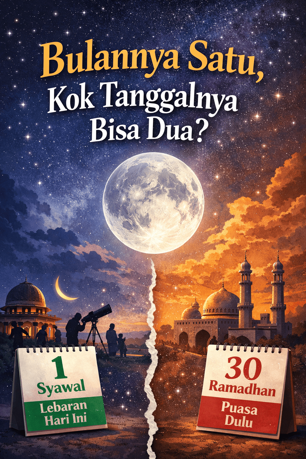 Pontianak (18/02/2026) Setiap kali Ramadan atau Idulfitri tiba, pertanyaan yang sama kembali muncul di ruang publik: “Kalau bulannya satu, kenapa tanggalnya bisa dua?”